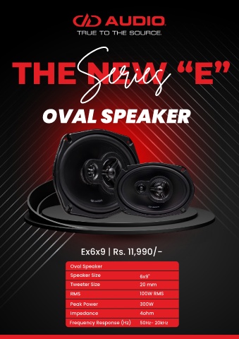 Series THE NEW “E” OVAL SPEAKER Ex6x9 | Rs. 11,990/- Oval Speaker Speaker Size 6x9" Tweeter Size 20 mm RMS 100W RMS Peak Power 300W Impedance 4ohm Frequency Response (Hz) 50Hz- 20kHz