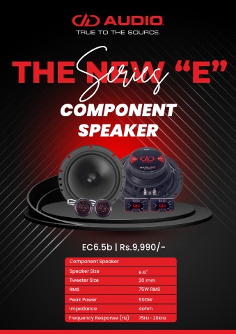 Series THE NEW “E” COMPONENT SPEAKER EC6.5b | Rs.9,990/- Component Speaker Speaker Size 6.5" Tweeter Size 20 mm RMS 75W RMS Peak Power 500W Impedance 4ohm Frequency Response (Hz) 75Hz- 20kHz