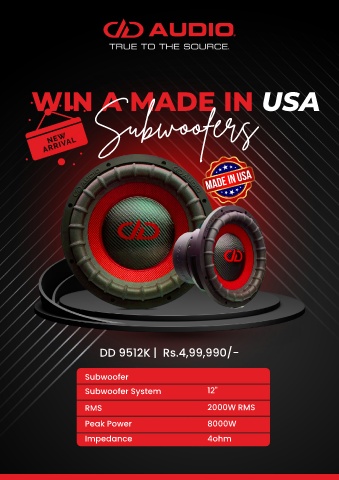 WIN A MADE IN USA Subwoofers DD 9512K | Rs.4,99,990/- Subwoofer Subwoofer System 12" RMS 2000W RMS Peak Power 8000W Impedance 4ohm