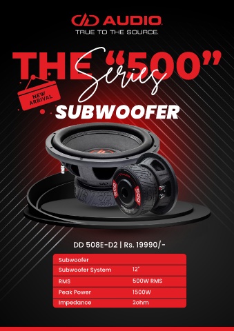 THE “500” Series SUBWOOFER DD 508E-D2 | Rs. 19990/- Subwoofer Subwoofer System 12" RMS 500W RMS Peak Power 1500W Impedance 2ohm