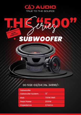 THE “500” Series SUBWOOFER DD 512E-D2/D4 | Rs. 34990/- Subwoofer Subwoofer System 12" RMS 700W RMS Peak Power 2100W Impedance 2/4ohm