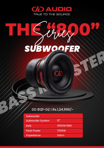 THE “800” Series SUBWOOFER BASS MONSTER DD 812f-D2 | Rs.1,24,990/- Subwoofer Subwoofer System 12" RMS 2500W RMS Peak Power 7500W Impedance 2ohm