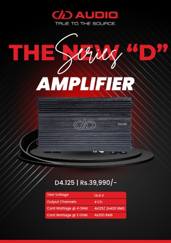 Series THE NEW “D” AMPLIFIER D4.125 | Rs.39,990/- Test Voltage 14.4 V Output Channels 4 Ch Cont Wattage @ 4 OHM 4x125/ 2x400 RMS Cont Wattage @ 2 OHM 4x200 RMS